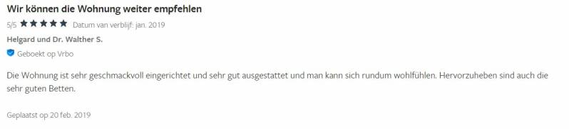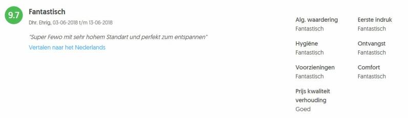 en een "außerordentliche" 5/5 score bij FeWo-direkt/Home Away!